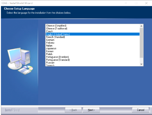 Kies de taal en klik "Next"