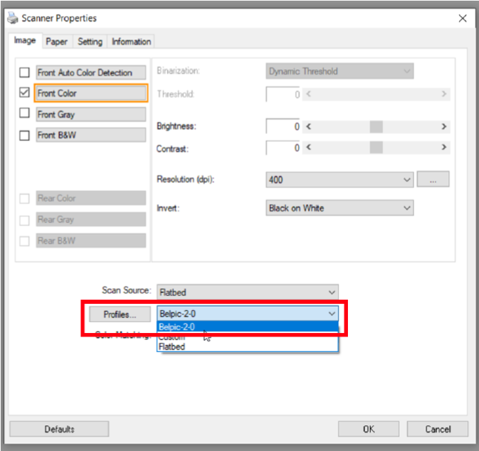 De optie "Configuratie Avision Forceren" in de instellingen van Belpic-2-0 laat toe om de configuratie van de Avision ADI6 scanner