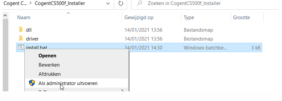 Download de driver en voer de install.bat uit als administrator