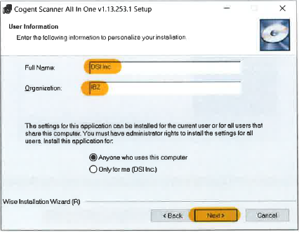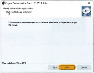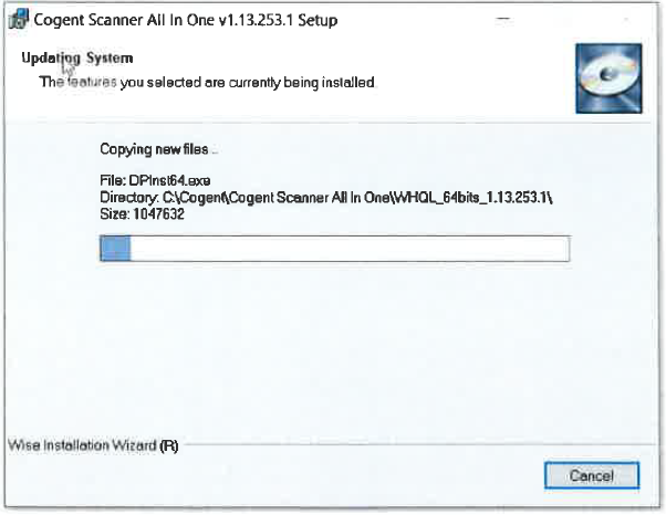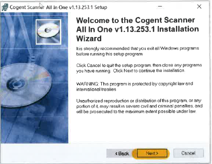 Indien een fout gebeurt tijdens de installatieprocedure, wordt de foutboodschap ‘Cogent CS500f NOT INSTALLED’ getoond. De Cogent CS500f scanner kan niet gebruikt worden in Belpic-2-0.