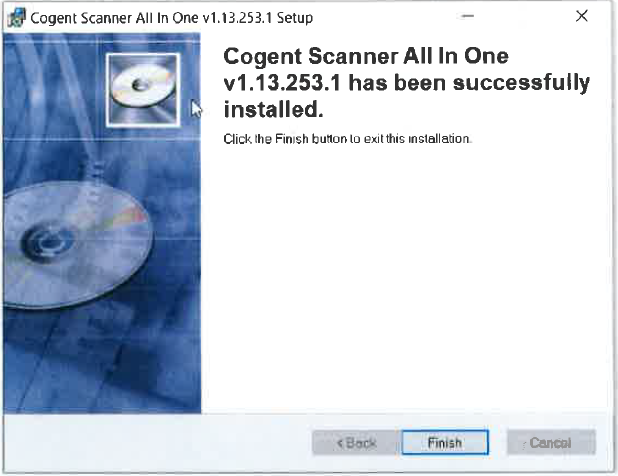Klik ‘FINISH’ De Cogent CS500e scanner is geïnstalleerd.