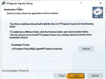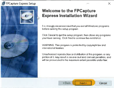 ➢ FPCapture_Express_vX.X.X.MSI (de laatste versie nemen) Opmerking : onder Windows10 wordt FPCapture_Express_v4.0.0 geïnstalleerd.