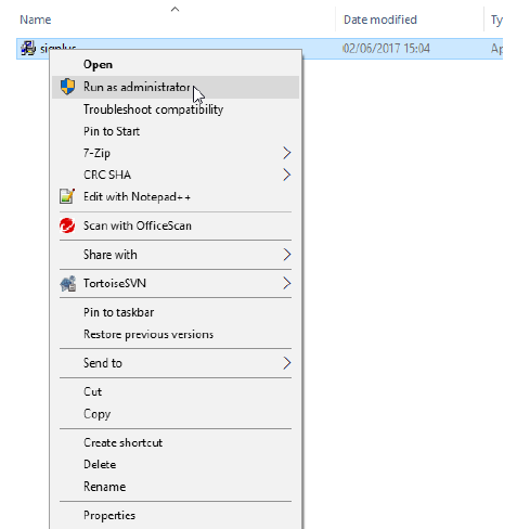 Voer het bestand Sigplus.exe uit als administrator.