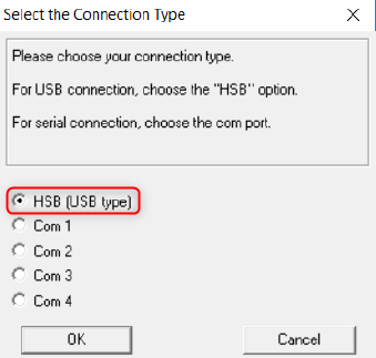 Kies het connectie type tussen de Topaz en uw computer. Klik op "OK".